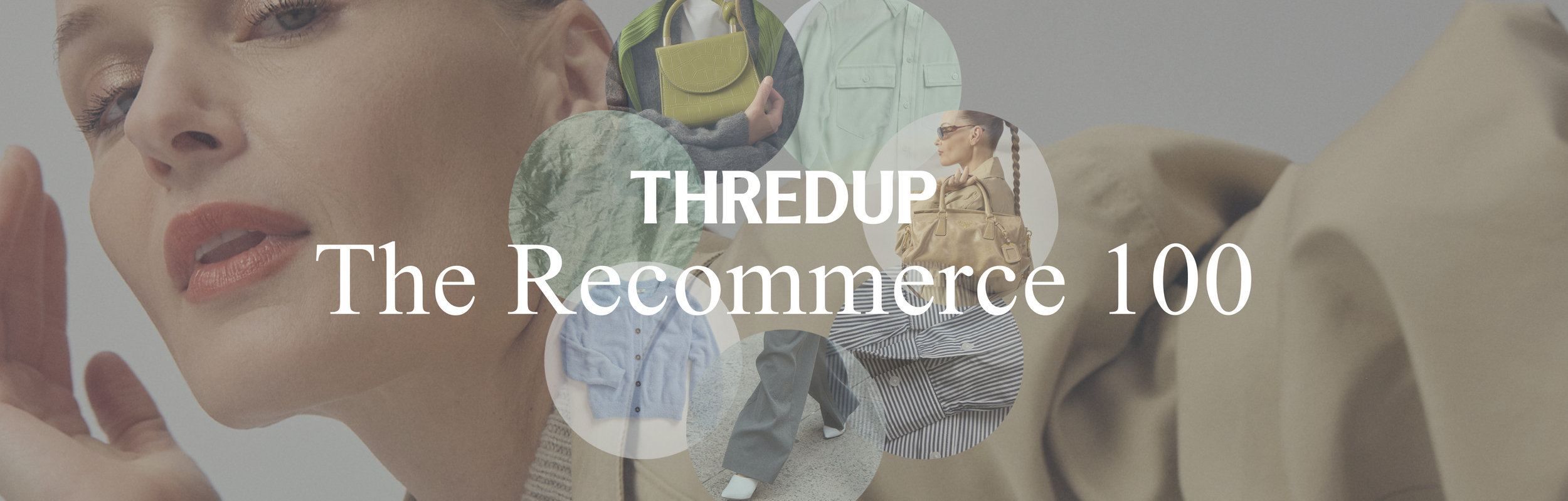 The Recommerce 100 is compiled from publicly available information to identify fashion brands selling their own brand’s pre-owned products online to US shoppers. Only resale listings that are available from a brand’s e-commerce site are counted towards that brand. Listing count includes listings managed by the brand, as well as listings by independent sellers (commonly referred to as peer-to-peer selling). A count of listings was completed on September 2, 2025. Listing count either reflects 1) the stated number of total results commonly found at the top of the first product listing page, or 2) if results are not featured on the product listing page, a manual count of all listings. Listing count is intended to be directionally representative of the size of a brand’s resale shop at a given time. There is no guarantee that our listing count is exact given the dynamic nature of e-commerce listings, sales, returns, as well as site and user experience factors. Listing counts do not include listings on third-party marketplaces (examples include thredup.com, therealreal.com, poshmark.com). ThredUp Resale-as-a-Service™ clients are counted among the brands and retailers with Resale Shops (e.g. Athleta, Madewell and American Eagle).